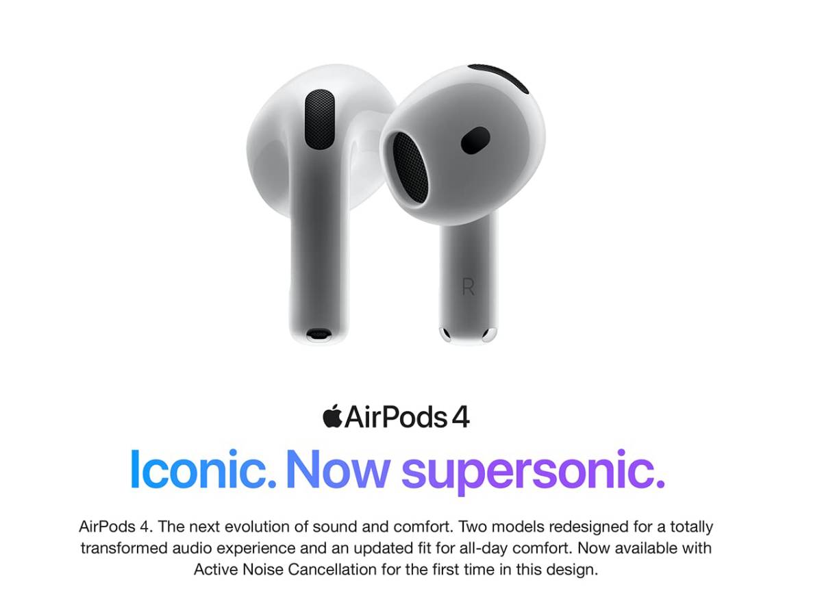 AirPods 4 have been redesigned for exceptional all-day comfort and greater stability. With a refined contour, shorter stem, and quick-press controls for music or calls.